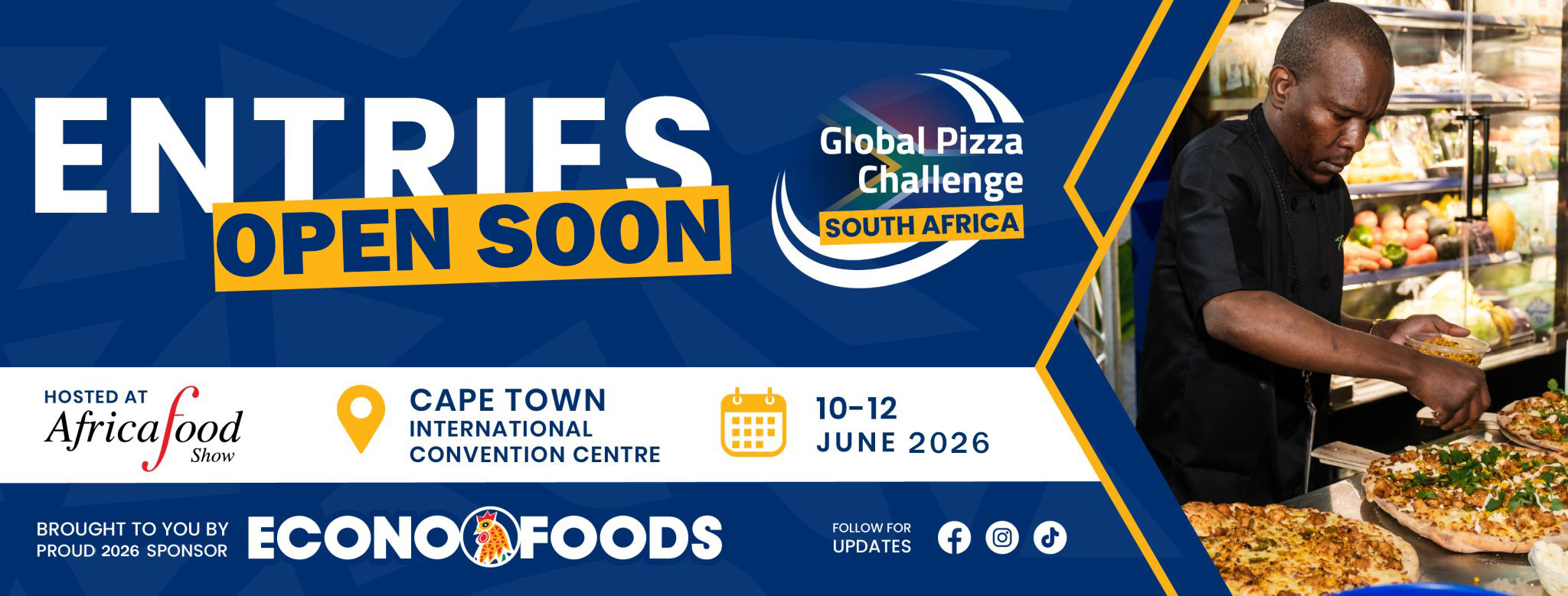 Attention all gastronomes! Flex your culinary muscles at the much anticipated Global Pizza Challenge 2026 to be hosted at “The Africa Food Show in Cape Town – Cape Town International Convention Centre (CTICC) 10 – 12 June 2026. Live streamed on Facebook and YouTube on the 10th – 12th of June 2026.